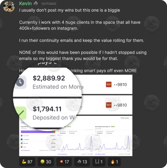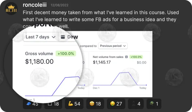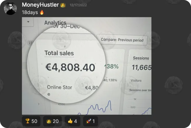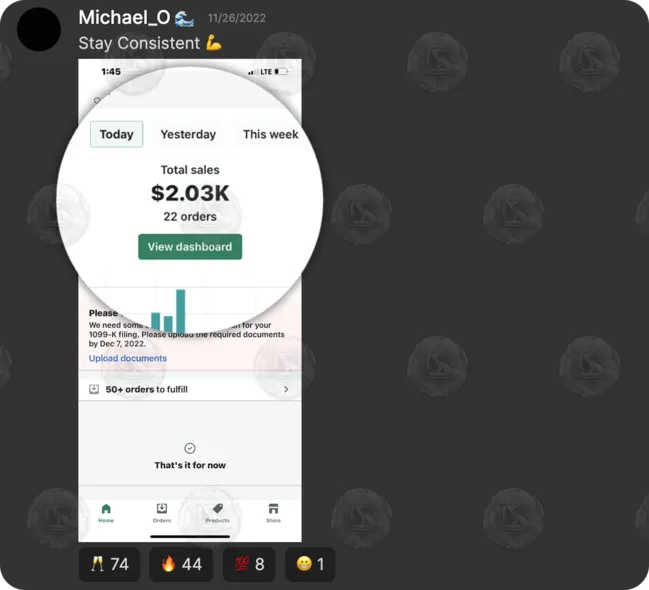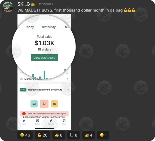 Our students advance in business like in a video game. Unlock new tutorials, build your money-making arsenal, and add more skills to your inventory. Our app is designed to gamify your progress from zero to 10K a month and beyond.