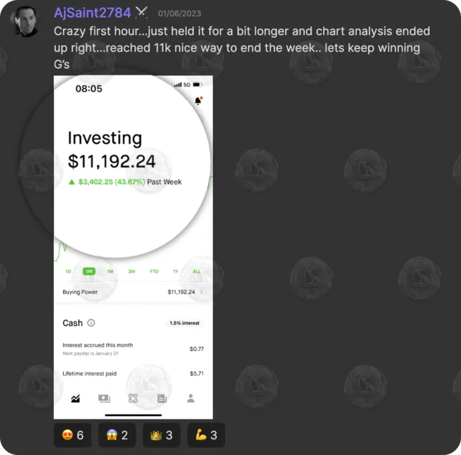 The Real World app provides you with direct access to multimillionaire mentors. Upon joining, the Professors will outline your personal battle plan for financial success. You'll receive guidance each step of the way through daily live sessions and 1-on-1 communication with the Professors.
